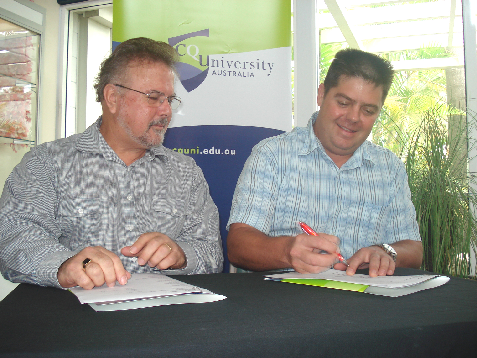 Geoff Fleming and Dr Viljoen signing the agreement